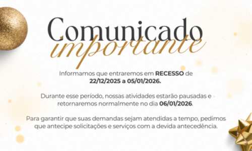 A AMIC PR informa que estará em recesso de fim de ano entre os dias 22 de dezembro de 2025 e 5 de janeiro de 2026, com retorno das atividades no dia 6 de janeiro.
